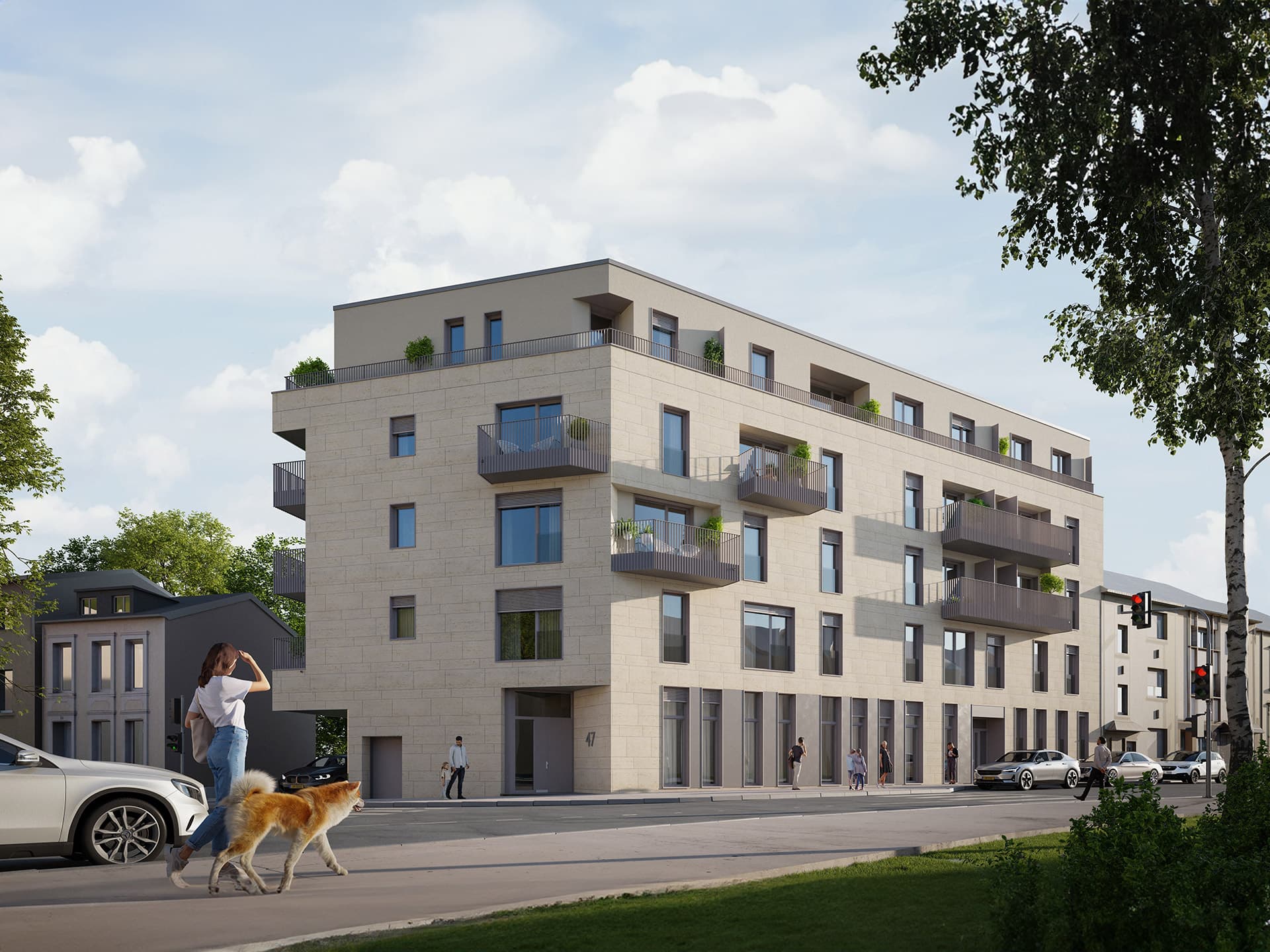 Bowie est une résidence qui se distingue par son architecture intemporelle. Avec sa façade en pierre naturelle, le bâtiment séduit par ses lignes épurées.